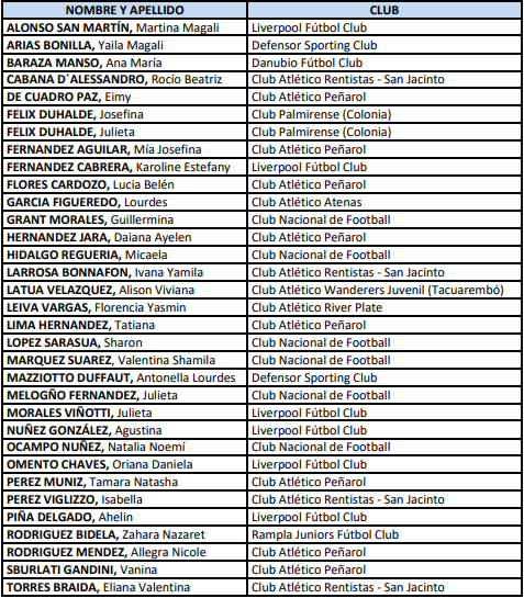 Futbolistas convocadas a la selección femenina sub-17 (del 21/6/2021 al 23/6/2021)