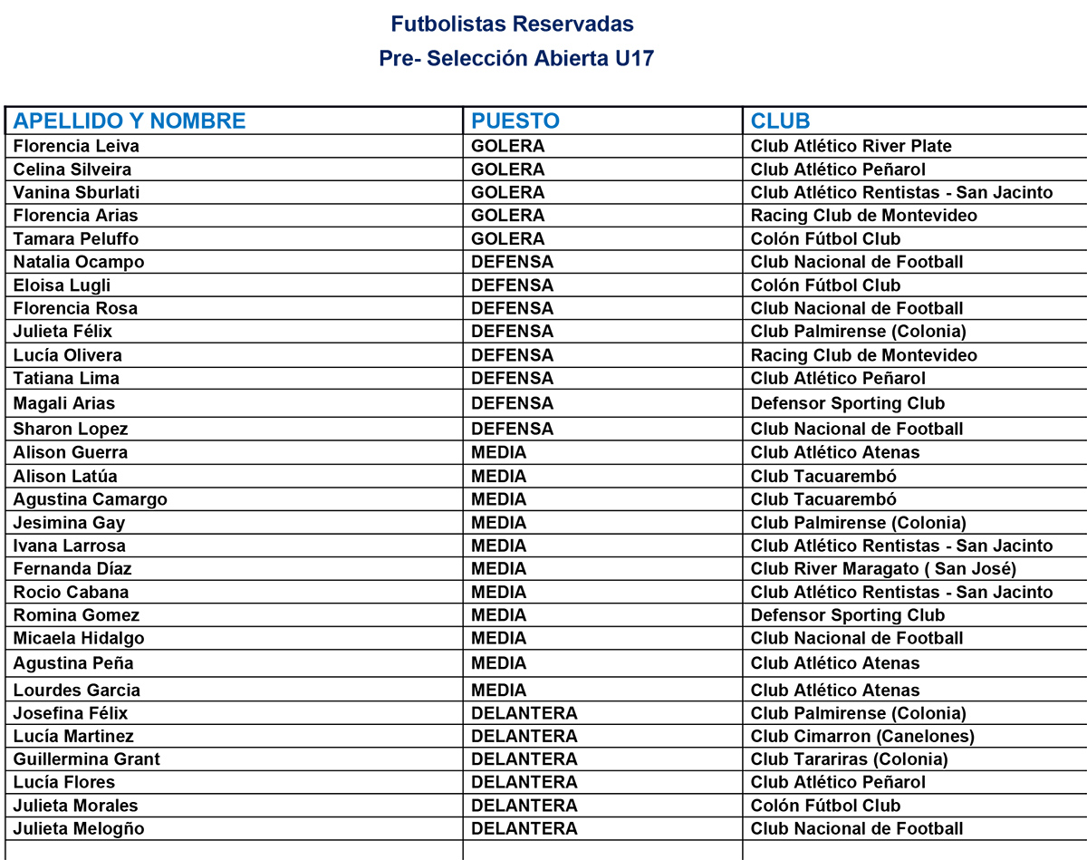 En esta ocasión, el cuerpo técnico que encabeza Santiago Ostolaza, elaboró una lista de 28 futbolistas.