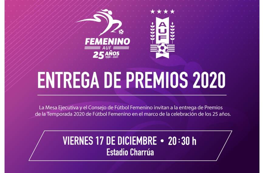 La Comisión de Fútbol Femenino y la Mesa Ejecutiva de Fútbol Femenino invitan a las ganadoras de las distintas distinciones individuales, planteles, autoridades y delegados de los diferentes clubes a recibir su respectiva premiación correspondiente al año 2020.