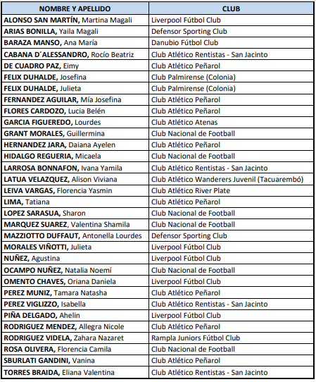 Futbolistas convocadas a la selección femenina sub-17 (del 7/6/2021 al 9/6/2021)