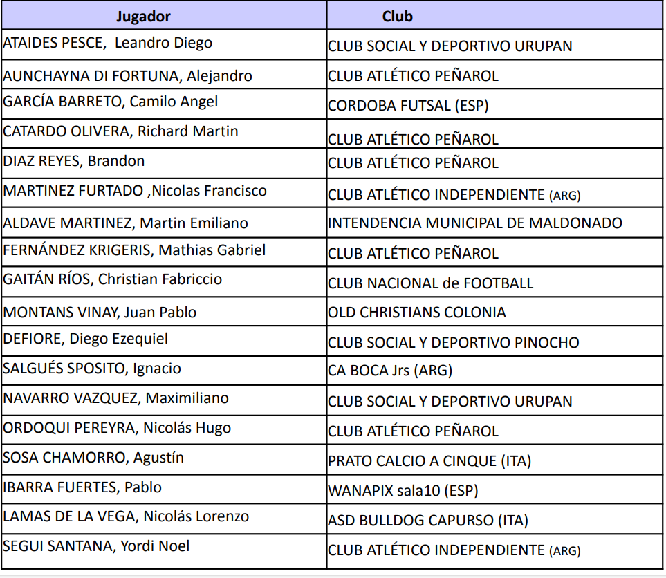 FUTBOLISTAS CONVOCADOS SELECCIÓN MAYOR DE FÚTBOL SALA (Del 22 al 25/1)