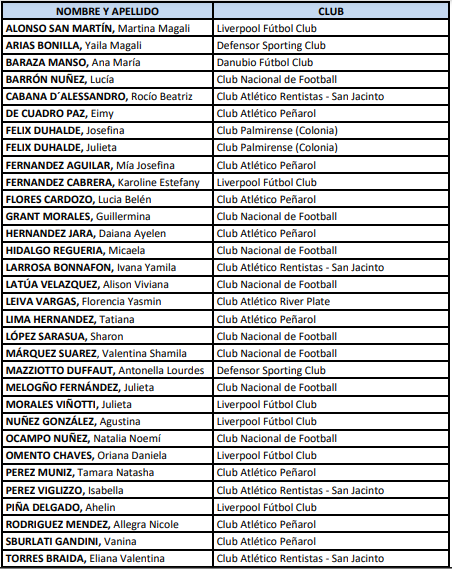 Futbolistas convocadas a la selección femenina sub-17 (del 26/07/2021 al 28/07/2021)