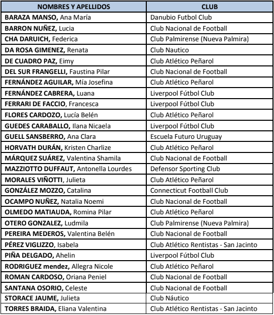 El cuerpo técnico, encabezado por Daniel Pérez, convocó 28 futbolistas para los entrenamientos a realizarse en el escenario del Parque Rivera. Las jugadoras seleccionadas para los encuentros amistosos se darán a conocer el día previo al primer partido.