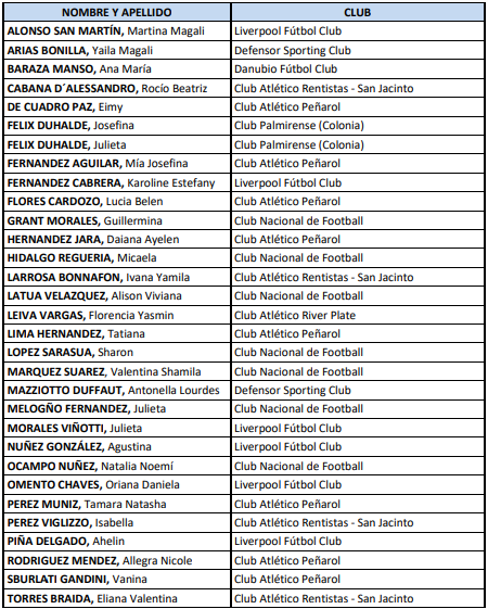 Futbolistas convocadas a la selección femenina sub-17 (del 19/07/2021 al 21/07/2021)