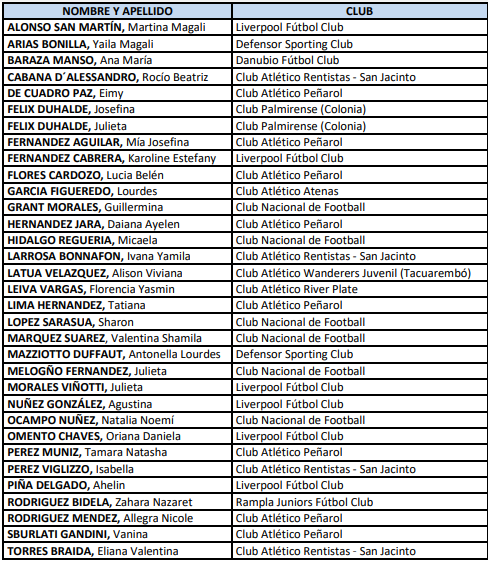 Futbolistas convocadas a la selección femenina sub-17 (del 28/6/2021 al 30/6/2021)