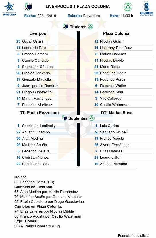 Plaza Colonia le ganó 1 - 0 a Liverpool en el estadio Belvedere, esta tarde por la 13a fecha del Torneo Clausura 2019.
