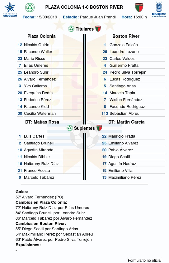 Plaza Colonia venció 1 a 0 a Boston River esta tarde en el estadio Juan Gaspar Prandi, por la 1a fecha del Torneo Clausura 2019.