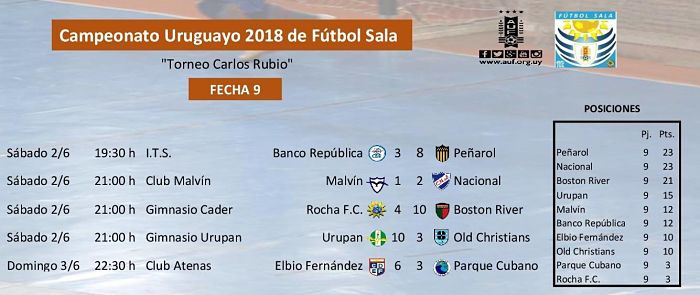 Se disputó entre sábado y domingo la 9ª fecha del Campeonato Uruguayo con cinco partidos en escenarios de Montevideo, Canelones y Rocha, donde Peñarol y Nacional quedaron como líderes de la competencia con 23 unidades.
