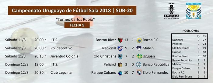 Se disputó entre sábado y domingo la 9ª fecha del Torneo Clausura sub-20 con cinco partidos en escenarios de Montevideo, Canelones y Colonia, donde Nacional se consagró campeón de la competencia con 27 unidades.