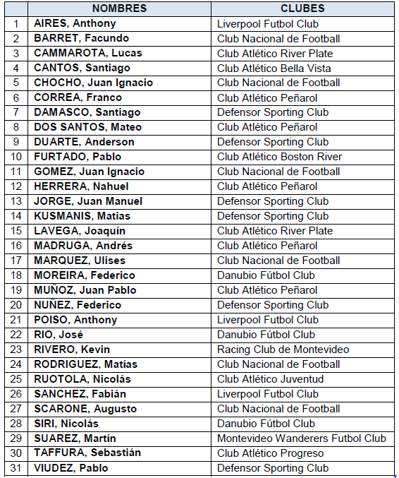 Futbolistas convocados a la selección uruguaya sub-15