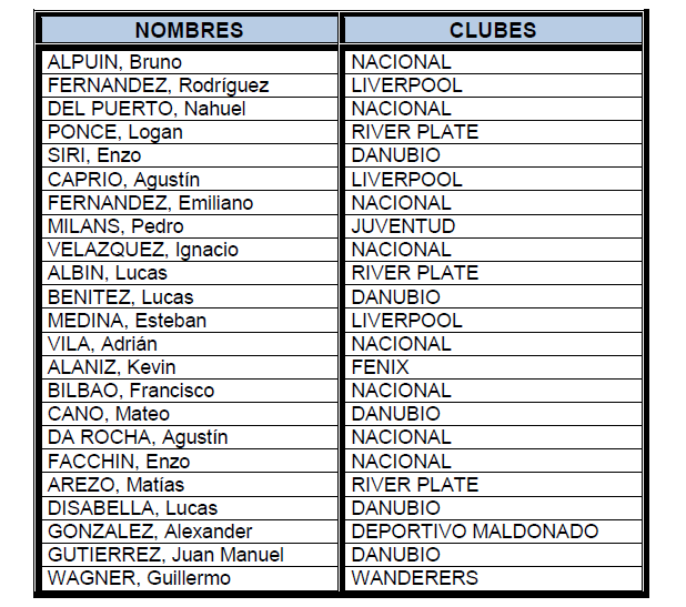 Futbolistas convocados a la selección uruguaya sub-15
