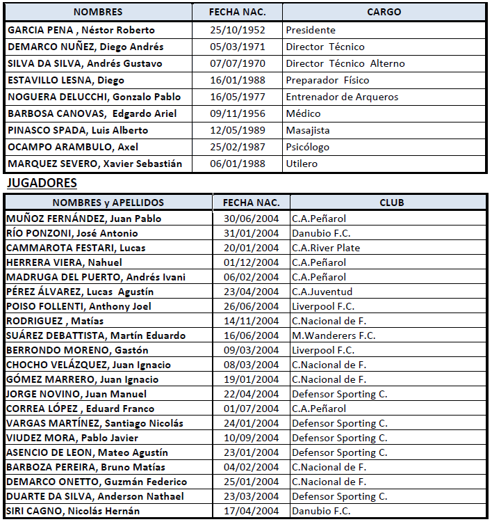 Uruguay tiene previsto llegar el lunes 17, en horario vespertino, y trasladarse hacia el Complejo La Ilusión de la localidad de Ricardone (ubicada a 20 kilómetros de Rosario), lugar en el que se alojará y entrenará bajo las órdenes de Diego Demarco y su Cuerpo Técnico.